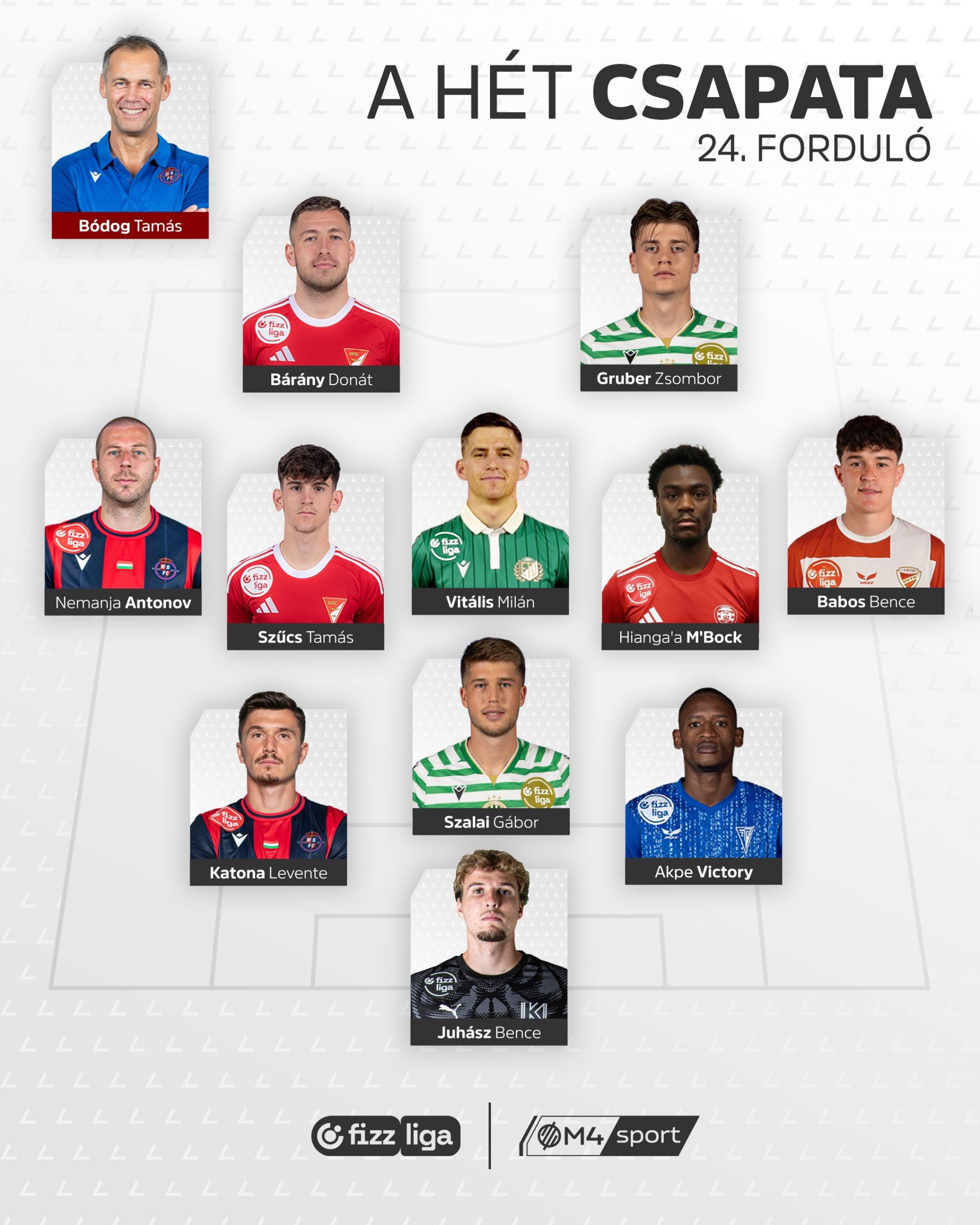 A Hét csapata: Juhász Bence (BSC) – Akpe Victory (ZTE), Katona Levente (Nyíregyháza), Szalai Gábor (Ferencváros) – Nemanja Antonov (Nyíregyháza), Vitális Milán (ETO FC), Hiana’a M’Bock (Kisvárda), Szűcs Tamás (DVSC), Babos Bence (DVTK) – Bárány Donát (DVSC), Gruber Zsombor (Ferencváros). Vezetődző: Bódog Tamás (Nyíregyháza)