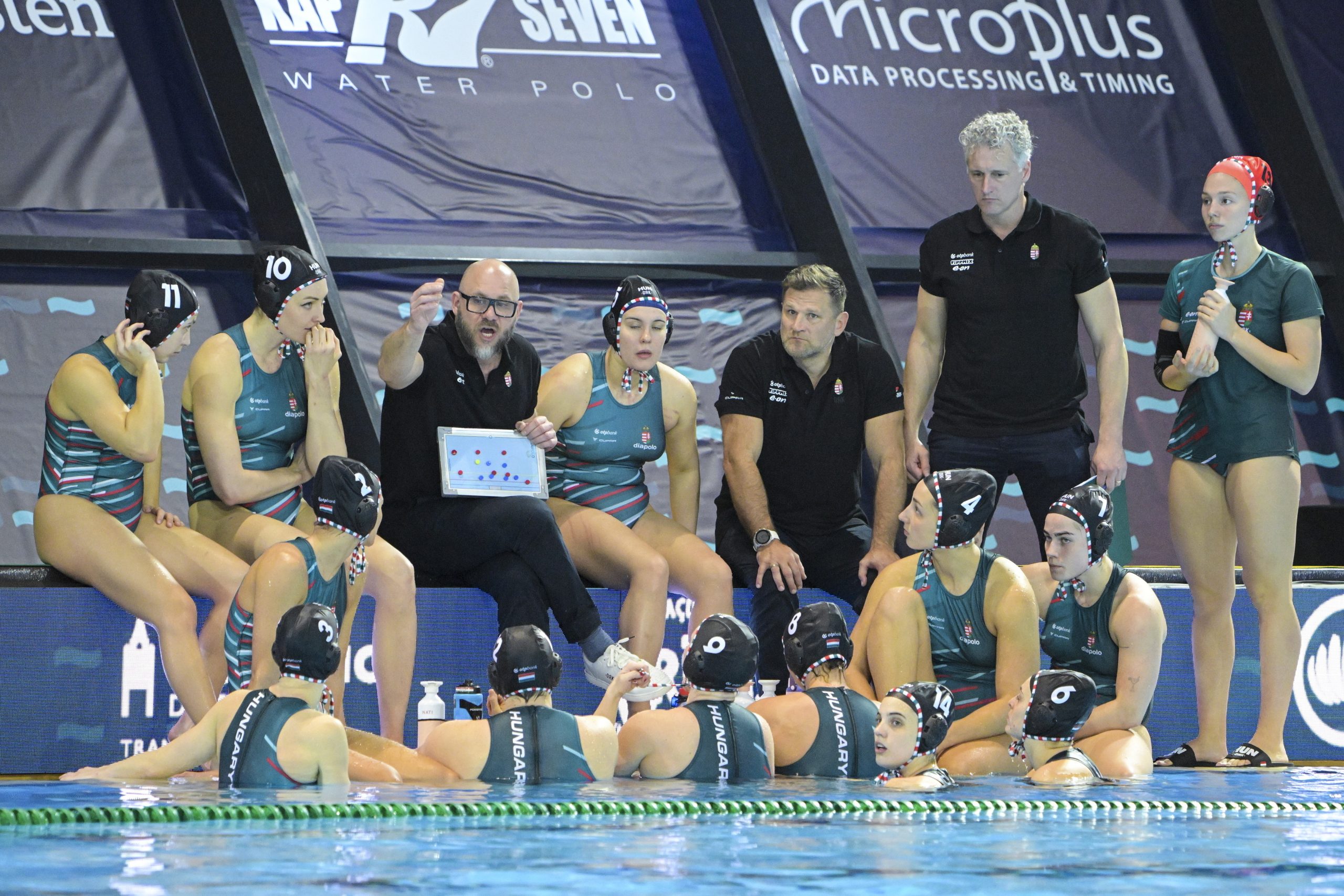 A magyar kispad a nõi vízilabda Európa-bajnokság elõdöntõjében játszott Görögország - Magyarország mérkõzésen a funchali Olimpiai Uszodakomplexumban 2026. február 3-án. A magyar nõi válogatott az aranyéremért játszhat, miután ötméteresekkel 12-11-re legyõzte a görög csapatot.