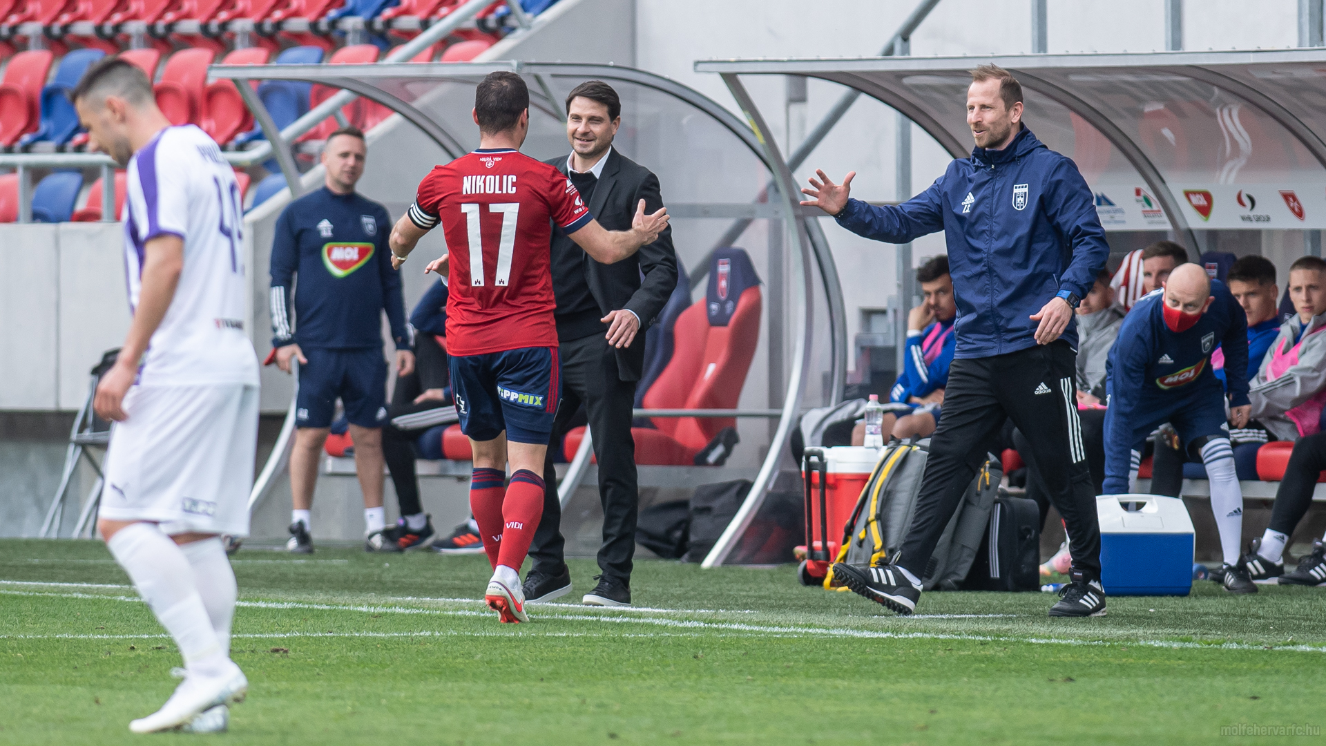 Torghelle Sándor készül gratulálni Nikolics Nemanjának (Fotó: molfehervarfc.hu)A fehérvári támadóknál át kell szakadnia a gátnak