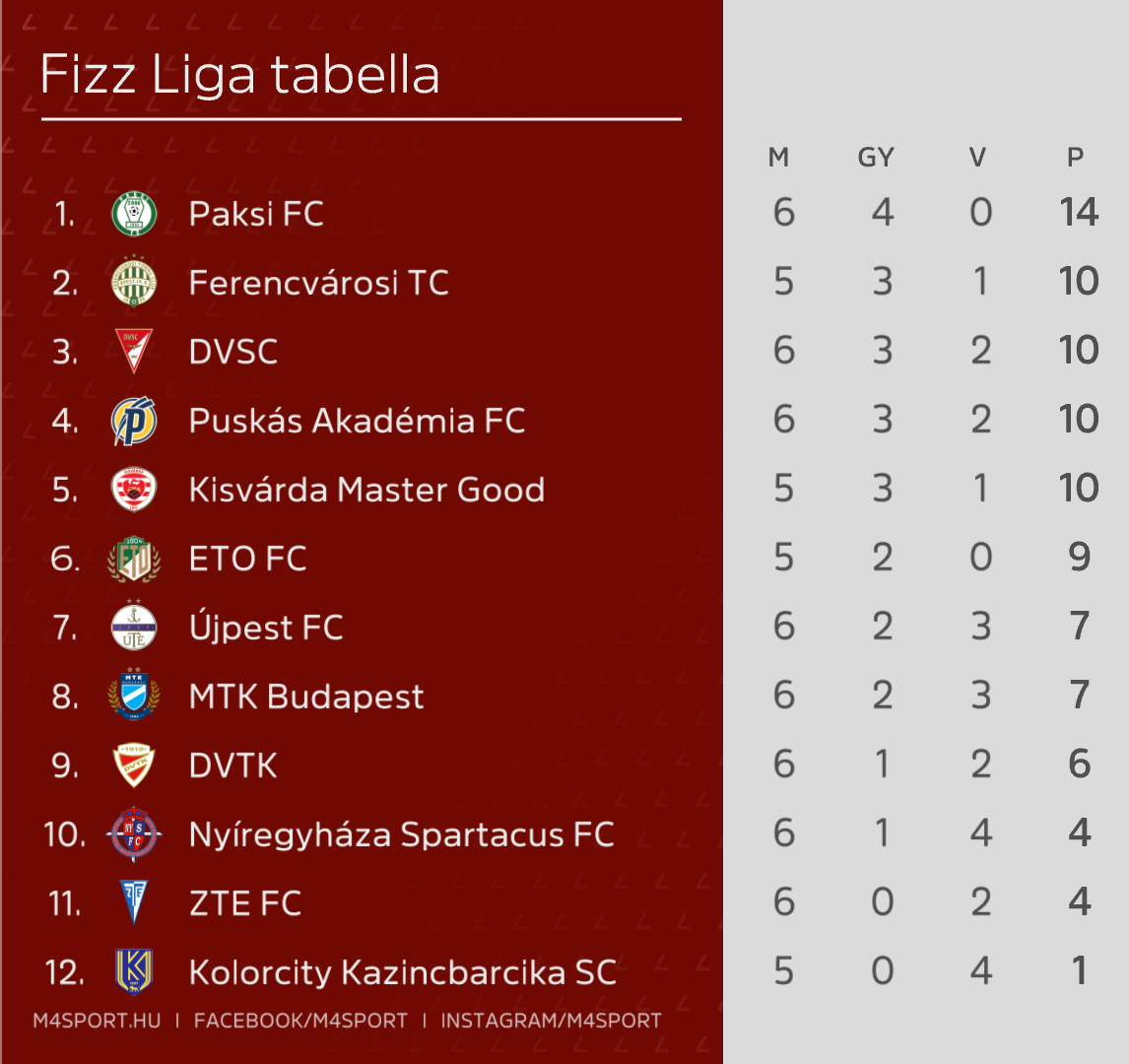 20:15 – Puskás Akadémia FC–ETO FC (M4 Sport, A hét meccse)