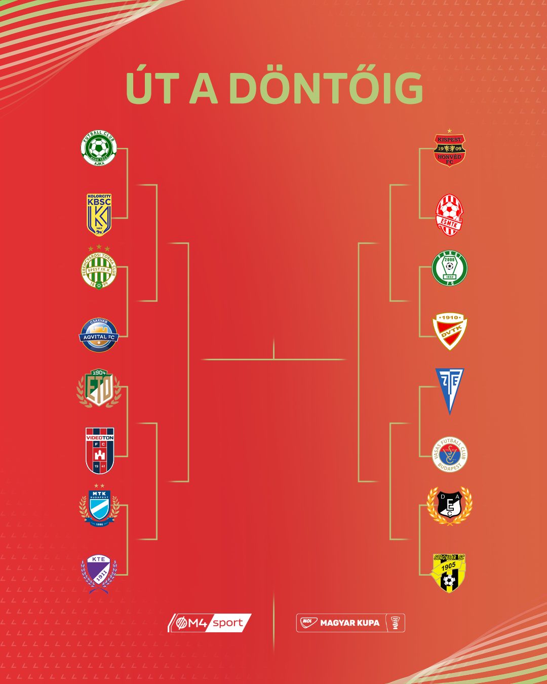 A MOL Magyar Kupa nyolcaddöntői, illetve a sorozat ágrajza.Bozsik az egyetlen NB I-es összecsapást, a Paks–Diósgyőr mérkőzést emelte ki a nyolcaddöntő párosításai közül, de megemlítette még a Honvéd–ESMTK NB II-es, NB III-as, kispesti-pesterzsébeti párharcot, illetve emlékeztetett arra, hogy a 2023/24-es idényben az ESMTK már szolgáltatott meglepetést, amikor kiütötte az akkor még élvonalbeli Videotont a kupából. A székesfehérváriak győri vendégjátékával kapcsolatban viszont úgy vélekedett, hogy az ETO–Videoton csak nevében számít rangadónak, a játékosállomány tekintetében nem lehet kérdéses a párharc kimenetele.