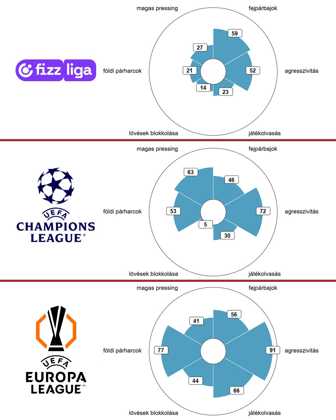a Fizz Ligában messze átlag alatt vannak, mindössze a csapatok 27 százalékánál jobb ebben a mutatóban, ezzel szemben a BL-selejtezők során a csapatok 63 százalékánál, míg az El-ben a csapatok 41 százalékánál.