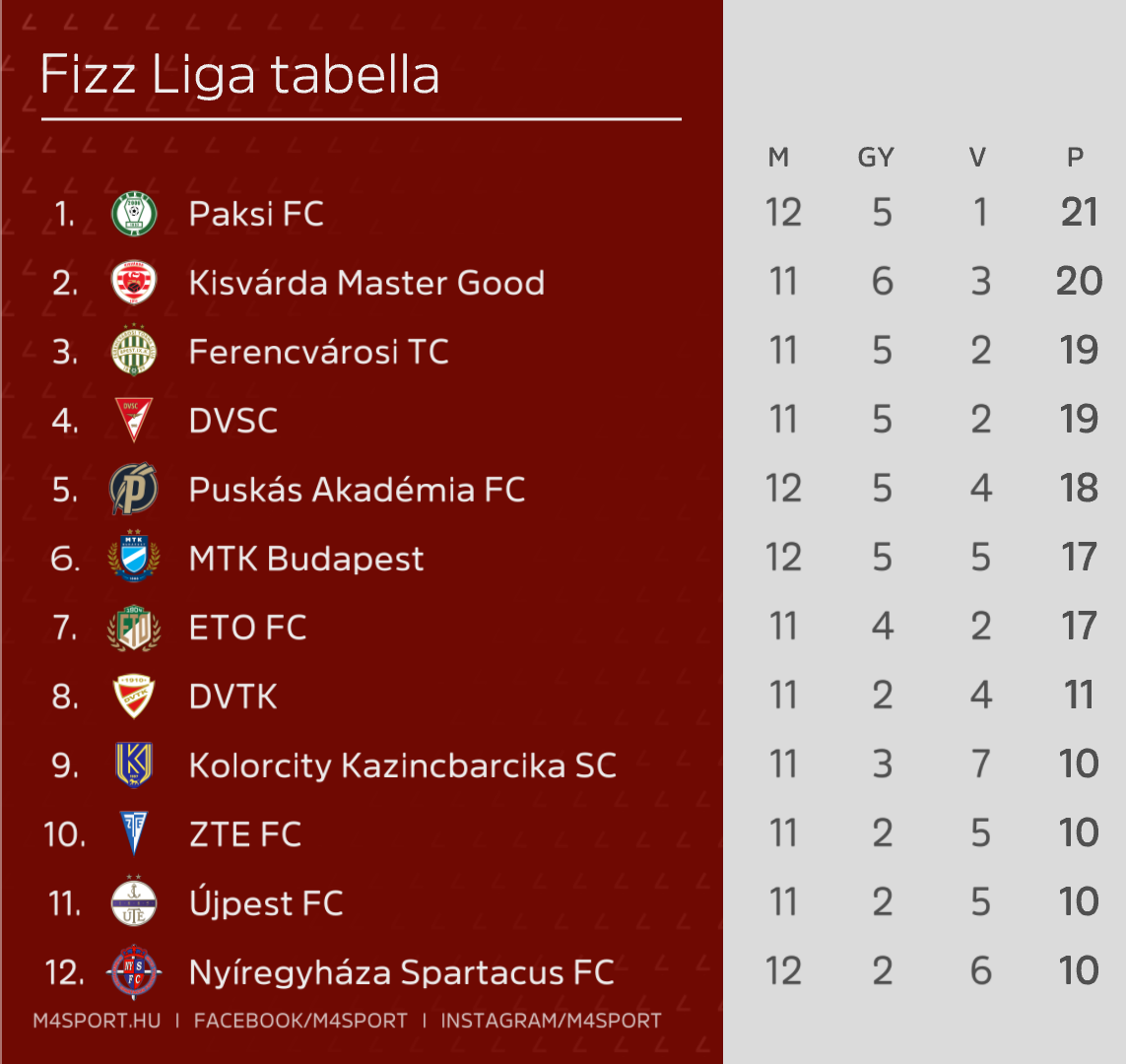 A vendégcsapat a Kisvárdától vette vissza az első helyet, amely pénteken került az élre.