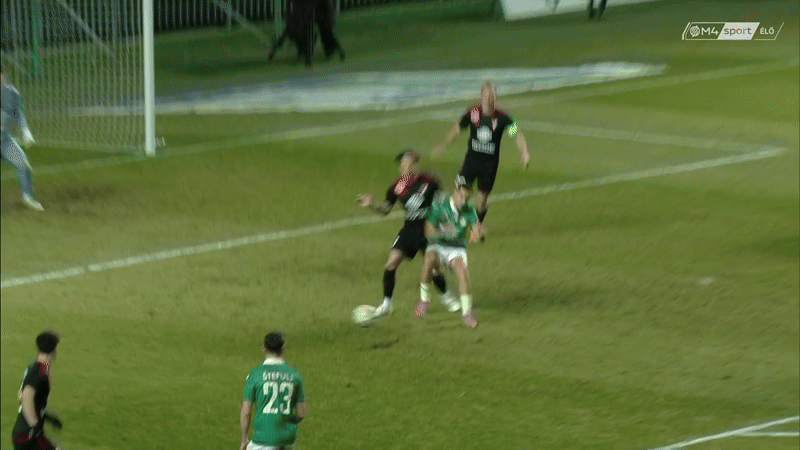 Játékvezetőknek is jó tanulság lehet: egy szituáció megítélésénél nem csak az adott pillanatot, hanem a szabálytalansághoz vezető teljes mozdulatsort nézni kell, először a VAR-ból még csak előbbit játszották be. A teljes felvételen azonban látszik, hogy Batik keze Benbouali válláról mozog a labda irányába! Nem a labda útjából próbálja elrántani, hanem éppen abba teszi bele, s bár valóban minimálisan növeli csak meg a testfelületét, akadályozza a labda útját, itt egyértelműen a tizenegyes a helyes döntés. Felmerült még esetleg, hogy nem érte-e előbb Benbouali karját a labda, de a visszajátszások alapján inkább Batikéról pattan rá vissza, illetve mennyire volt váratlan labda Batik számára, de a beadás során szinte végig láthatta, csak a másodperc törtrészéig takarta a kilátását egy Benbouali-tarkó.